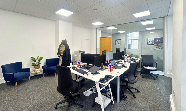 38 Thistle Street comprises two interconnected townhouses providing office accommodation over ground and three upper floors.